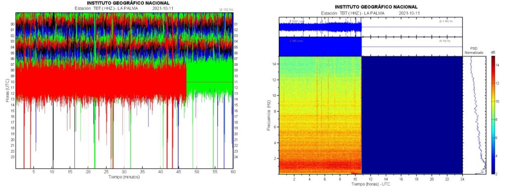 Fig 1: Seismic signal showing the end of the eruption. Source: IGN