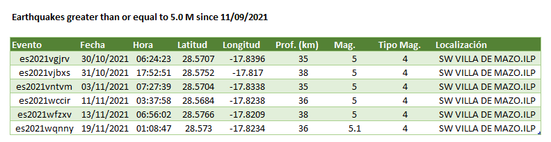 There was some good news for La Palma over the week end; the eruption was declared over on 25 December 2021. The eruption, itself, ended on 13 December 2021 at 22:21. There was a precautionary period of waiting before announcing the end of the eruption.