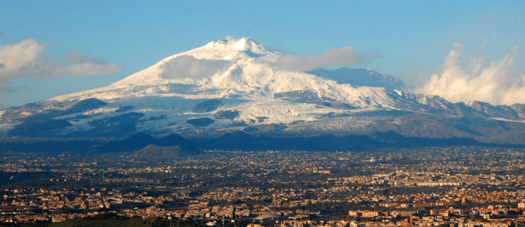 Fig 1: Cropped image of Mount Etna with Catania in the foreground from a photo by BenAveling in 2007, published under CC BY-SA 4.0. Source: Mount Etna – Wikipedia