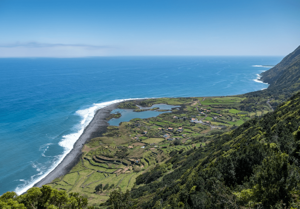 Fig 1: Image of Fajã dos Cubres, São Jorge, Azores, cropped from one by Jules Verne Times Two. Published under CC BY-SA 4.0 (Source: São Jorge Island – Wikipedia).