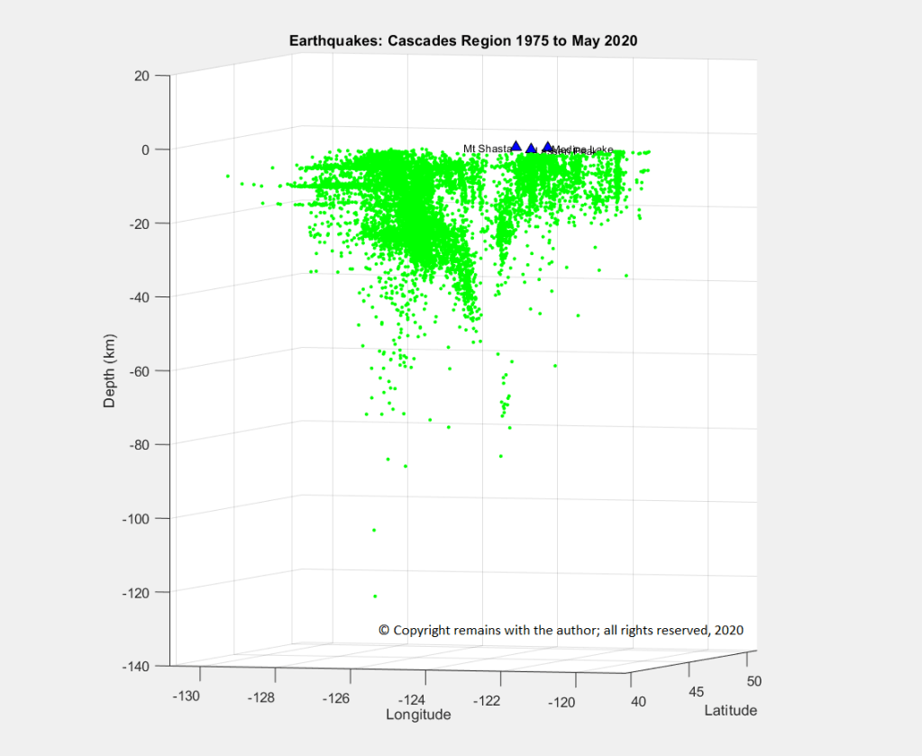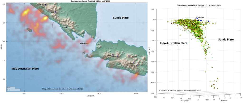 The earthquake density plots and depth v longitude plots for these years are set out in Figs 8 to 11 below.