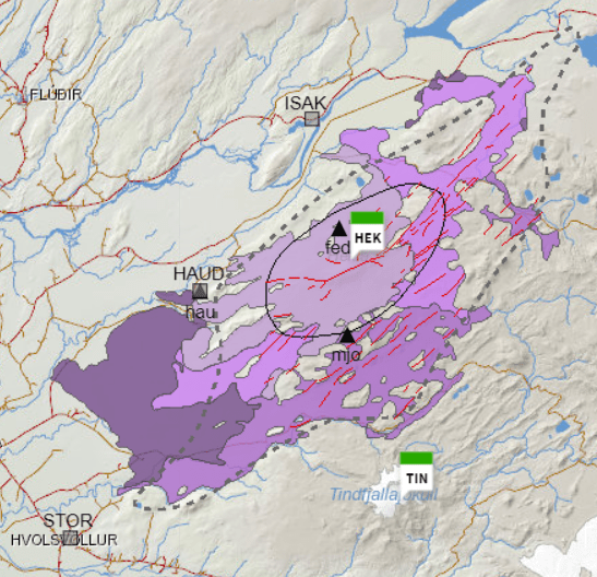 Fig 2: Map: After Jóhannesson and Einarsson (1992), Jóhannesson and Saemundsson (1998a), Larsen et al (2013a), Base data, Iceland Geo Survey, IMO, NLSI | Base map: IMO. In: Oladottir, B., Larsen, G. & Guðmundsson, M.T., Catalogue of Icelandic Volcanoes. IMO, UI and CPD-NCIP. Retrieved from Icelandic Volcanoes: http://icelandicvolcanos.is/?volcano=HEK