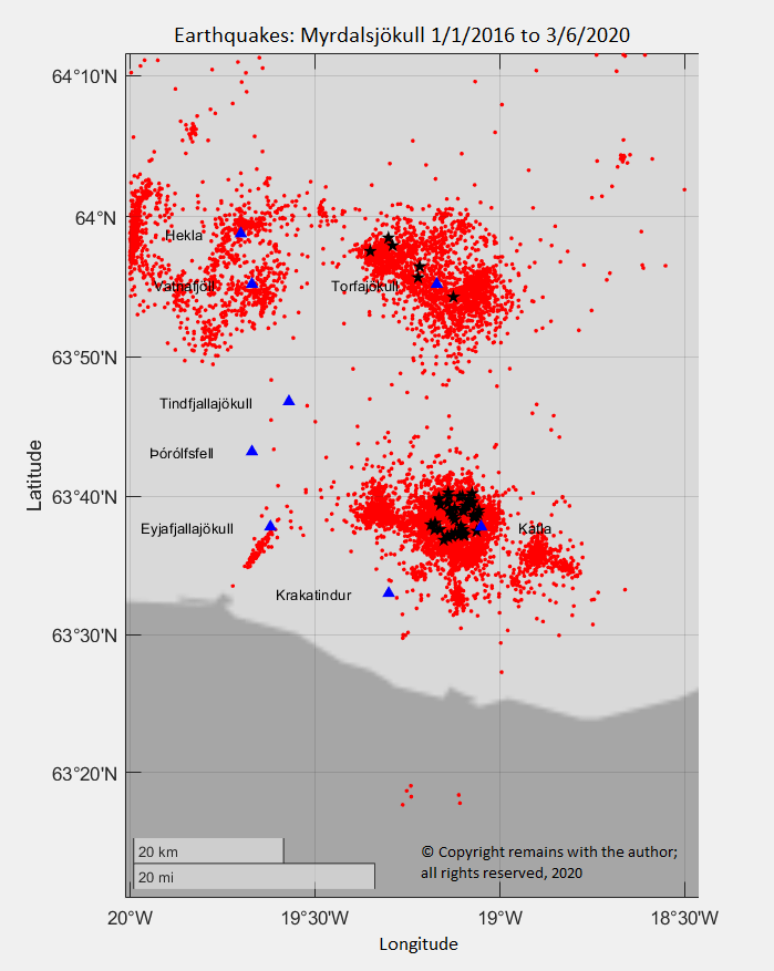 Continuing our theme of seismicity in Iceland, we have now reached the Mýrdalsjökull Region and are heading towards the Fire Districts in the Eastern Volcanic Zone.