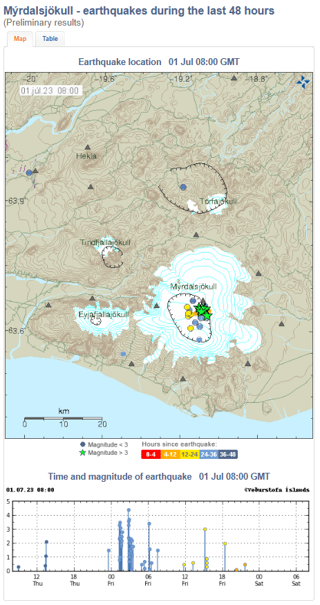 Continuing our theme of seismicity in Iceland, we have now reached the Mýrdalsjökull Region and are heading towards the Fire Districts in the Eastern Volcanic Zone.