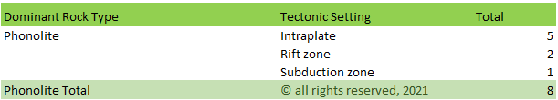 | Occurrence & Formation | Formed from the fractional crystallisation of alkali basaltic magmas. Found in continental rift valleys, hot spots and late eruptions of ocean islands. |