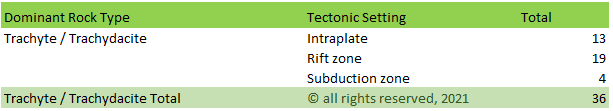 Trachyte / Trachydacite volcanoes occur in mainly intraplate or rift zones. Well-known examples include Campi Flegrei in Italy and Rungwe in Tanzania.