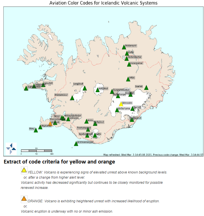 The Department for Civil Protection has advised on 1 March 2021, that satellite images show deformation in the area has increased more than expected, indicating possible magma inflow.