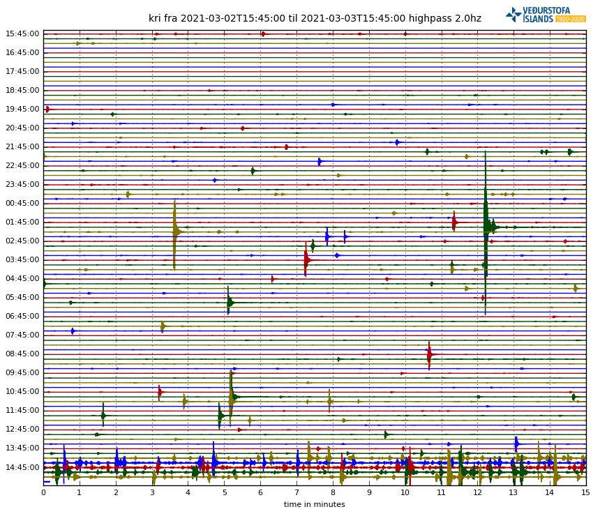 The earthquake swarm which started on 24 February 2021 between Kleifarvatn and Svartsengi on the Reykjanes Peninsula is continuing.